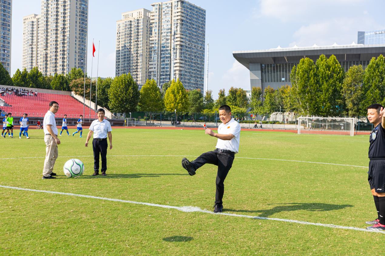 Li Weidong, vice president of Jianghan University, kicked off the game and watched the entire match with teachers and students to cheer for the JHU athletes.